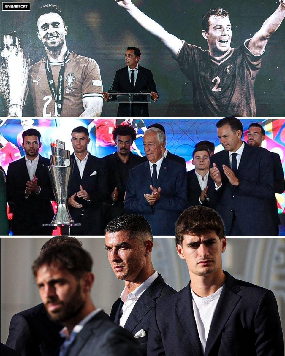 葡萄牙中场鲁本-内维斯宣读了致若塔的悼词,而作为国家队队长,C罗眼眶泛红,与队友默哀,现场拥抱了若塔的父亲,还代表国家队向全场展示了欧国联的冠军奖杯。